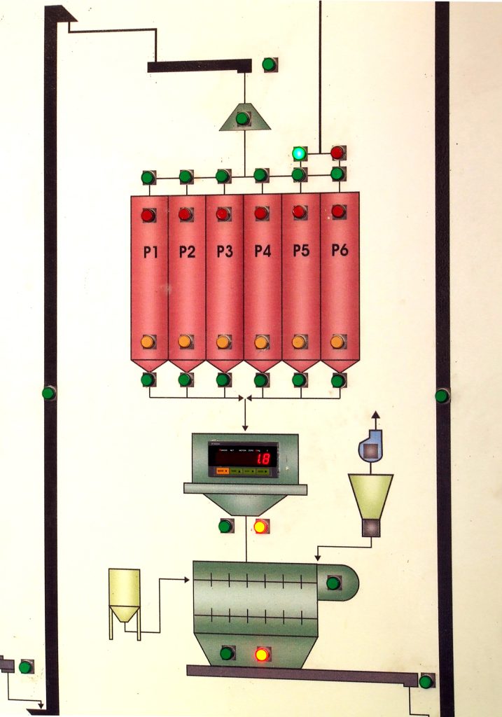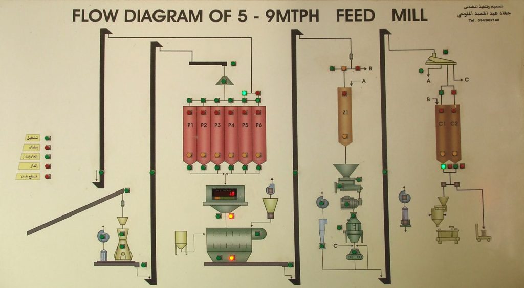 يعتبر نظام التنسيب (الخلط) من اهم الامور في مصنع العلف وهو يعتمد على عدد البرايم في التنسيب اضافة اللى بوابة الميزان وبوابة الخلاط ويتميز التنسيب لدينا:
